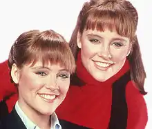 Double Trouble is an American sitcom television series that aired on NBC from April 4, 1984 to March 30, 1985. The series stars identical twins Jean and Liz Sagal as Kate and Allison Foster, two teenagers living under the watchful eye of their widowed father. The show was considered an updating of the "twins in mischief" concept seen in films like The Parent Trap or The Patty Duke Show of the 1960s. The Sagal sisters acknowledged that Norman Lear, the Sagal family's godfather,[1] was the one who held influence over the show's concept.[2]