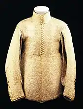 A doublet (/ˈdʌblɪt/;[1] derived from the Ital. giubbetta[2]) is a man's snug-fitting jacket that is shaped and fitted to the man's body. The garment was worn in Spain, and spread to the rest of Western Europe, from the late Middle Ages up to the mid-17th century. The doublet was hip length or waist length and worn over the shirt or drawers. Until the end of the 15th century, the doublet was usually worn under another layer of clothing such as a gown, mantle, overtunic or jerkin when in public.