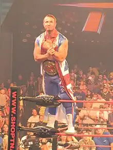 After another stint away, Williams returned on 14 February 2004 to defeat Chris Sabin in the pure wrestling tournament, but was later knocked out by CM Punk.[13] On 17 July, in Elizabeth, New Jersey, Williams defeated Jay Lethal, Nigel McGuinness and R. J. Brewer, to qualify for the Pure Wrestling final.[14] The final was contested later that evening, and saw Williams defeat Alex Shelley to capture the Pure Wrestling Championship.[14][15] Williams had two successful defences of the Pure Wrestling Championship, defeating Shelley in a rematch on 23 July, and Austin Aries the following day.[15][16][17] He would go on to lose the title to John Walters on 28 August.[15][18]