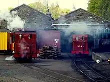 Beyond the platforms stand the locomotive shed, machine shop, paint and carpenters' shops in two rubble stone buildings built in the 1890s. Beyond them is the modern carriage shed which was erected in 1999, on the site of a coal yard, replacing the 1893 original which was demolished to make way for the Bus depot and headquarters block adjacent. The locomotive shed is capable of holding up to 12 locomotives in addition to which the single road workshop can store up to five locomotives at any one time. This facility features overhead lifting gear which is capable of lifting locomotive boilers from the frames to carry out maintenance; there is also a static beam engine and wheel lathes located in this shed, which also houses the blacksmith and plant room to the rear, the former being converted from a stores area in 2001.