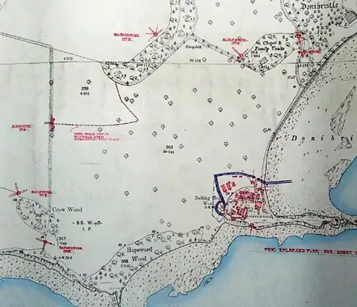 ![]() Original plan of the Downing Point Battery and outer defences (1916) | |