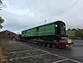 The DCDR also has a large selection of wagons, goods vans and underframes. Ex-NCC brake van No. 33 was the railway's first passenger-carrying vehicle. Included in the railway's wagon fleet is the most powerful steam crane in Ireland, NCC No. 3084. As the wagons do not contribute to bringing in revenue like engines and carriages, most are in storage except for a small few in use by the railway's Permanent Way or Locomotive Departments. In time, DCDR hopes to construct a dedicated goods shed in order to finally give its wagons a permanent home.[23] In August 2022, a complete ballast train composed of three hoppers and a plough van were delivered to the railway from North Wall, Dublin across two days, supported by Iarnród Éireann.[24]
