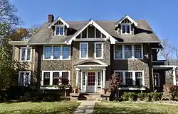 Built in 1926, it is the largest Tudor Revival house in the city.[2] The 2½-story, wood-framed house features a symmetrical facade, and half-timbering that is associated with the style. It is capped with a steeply pitched gable roof and gable dormers. It has an unusual exterior cladding of concrete with river gravel cobblestone set in the wet concrete during construction. The hen's egg sized stones are more than likely from the Des Moines River near Eddyville, Iowa, as they are consistent with other rocks available from that location.[2]