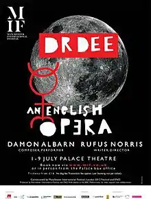 Dr Dee: An English Opera is an opera created by theatre director Rufus Norris and musician and composer Damon Albarn. Its debut performance was at the Palace Theatre, Manchester in July 2011, as part of the 2011 Manchester International Festival.[1] The opera is based on the life of John Dee, medical and scientific advisor to Elizabeth I.[2]
