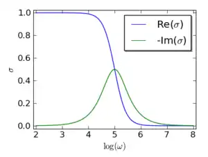 The Drude model can also predict the current as a response to a time-dependent electric field with an angular frequency ω. The complex conductivity is