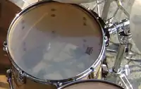 While not required for operation, most drum manufacturers label their products by way of a drum "badge". The badge is a label attached to the drum shell with a grommet, which is embossed with the manufacturer's name or logo, and often a serial number as well. The grommet doubles as a "vent" hole for two-sided drums.[3]
