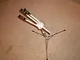 The older, traditional pattern has two arms that pivot, and one that slides to accommodate varying sizes of drum. This is satisfactory for a tilted drum; The drum is tilted away from the sliding arm and rests on the two pivoting arms. If it is horizontal, or tilted the wrong way by inexpert players, then the drum is insecure.