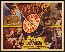 Drums of the Desert is a 1940 American romantic adventure film directed by George Waggner and written by Dorothy Davenport and George Waggner. The film stars Ralph Byrd, Lorna Gray, Mantan Moreland, George Lynn, Willy Castello and Jean Del Val. The film was released on October 7, 1940, by Monogram Pictures.[1][2][3]