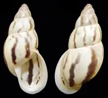 Drymaeus strigatus is a species of tropical air-breathing land snail, a pulmonate gastropod mollusk in the family Bulimulidae.