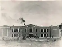 1936–1937 – After acquiring land on the corner of 200 West and 100 North, construction started on a separate high school building in June 1936. Ground water issues caused problems with pouring the foundation; these were alleviated by installing tiles and channeling the ground water to the basement of the 1912 building, where it was pumped out to the street. The high school was finished in the late fall of 1936 and final payment was made to the Tolboe and Tolboe company for construction. The 1907 structure was torn down and materials used to construct the 40' × 60' Manual Arts building just west of the new high school.[5]
