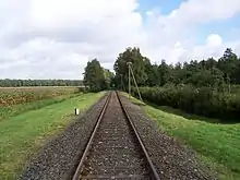 The dismantling of the section between Steinfurt and St. Arnold was finally completed on 30 September 2005.[2] The first sod for the construction of the Munsterland cycling track was turned at St. Arnold station on 16 December 2008. This new cycle path which has been usable from Lutum to Rheine since the autumn of 2012, was officially opened on 5 May 2013. Between Coesfeld and Lutum, the cycle track is connected to the existing cycling network, as the Duisburg-Quakenbrück line continues to be used by the Empel-Rees–Münster line.[5]