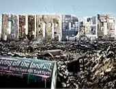 Described as Channel 4's "biggest marketing campaigns of the year", Dumped was promoted via various methods.[4] Advertisements for the programme appeared on websites such as Yahoo, The Guardian, New Scientist, The Daily Telegraph and MSN.[4] Television adverts, using the 1998 single "Delta Sun Bottleneck Stomp" by Mercury Rev, featured people performing everyday tasks such as bathing whilst on the landfill.[4] Posters featuring the programme's tagline, "Living off the landfill", were displayed across Britain and others appeared on the London Underground.[4] Some bus shelters within London featured posters which were made out of rubbish, and 2 September 2007 edition of The Sunday Times featured a biodegradable bag wrap to promote the programme.[4] Eight members of the London Philharmonic Orchestra performed Land of Hope and Glory on the landfill site that the programme was filmed, using instruments that had been made out of waste.[5]