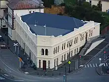 Plans for the new library site were sketched in 1973, with construction commencing in 1978.[5] The new building, at 230 Moray Pl, opened in 1981 and remains open to this day.[2] Although the city library was originally independent from other nearby libraries, the 1989 merger of local councils and borough councils led to the creation of the Dunedin Public Libraries network, which incorporated the libraries in Mosgiel, Port Chalmers, Waikouaiti, Blueskin Bay, and Dunedin city into one entity.[2][6]