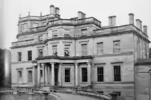 Francis James Usher bought the house and gardens from Sir John Richard Hall in 1918 or 1919, and the wider estate remains in the Usher family ownership.[42] In 1920 Usher employed Ernest Auldjo Jamieson to modernise the house (and add electricity). New furniture was commissioned from Whytock & Reid in Edinburgh. The First world War caused huge problems in terms of loss of the vast staff required (not just through death but through reluctance to return to such poor wages) and despite its recent modernisation the house fell into rapid decline. The house was photographed by Country Life magazine in 1925, creating a record of its grandeur in use as a house. It was requisitioned for use as a school during the Second World War and had a fire in 1947. It was destroyed by a controlled explosion in 1958. A smaller house was built on the site.[43]
