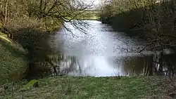 The Clerkland Burn rivulet runs past the Dunlop House mansion, forming the boundary between the parishes of Stewarton and Dunlop.[6]