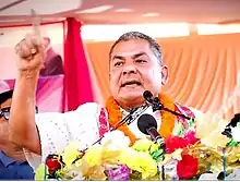 ![]() Prasai during his speech in Mirchaiya in November 2023 | |