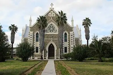 The Dutch Reformed Church in Jansenville was the first of a total of seven congregations of the Dutch Reformed Church that was founded in 1855[1] and is therefore the 61st oldest congregation in the entire Church and the 13th oldest congregation in the Synod of Eastern Cape.[2][3] The NG municipality Middelburg, Cape, merged with its daughter municipality Middelburg-Uitsig as Middelburg-Karoo in 2010 and that year has since been indicated as its founding date, because Jansenville moved up one place.[4]