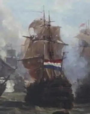 The ship Admiraal Tjerk Hiddes de Vries during the Battle of Camperdown.