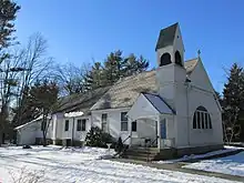 The first structure in North Belchertown, at what would become known as Dwight, was erected about 1765 by Nathaniel Goodell.[21] It was torn down about 1875. Today, the Dwight Station Mini Mart stands about where the first structure once stood.[22]