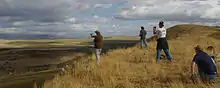 In the late 1990s, radio-controlled gliding awoke to the idea of dynamic soaring (a "discovery" largely credited to RC soaring luminary Joe Wurts).[5] Radio-controlled glider pilots perform dynamic soaring using the leeward side of ground features such as ridges, saddles, or even rows of trees. If the ridge faces the wind, and has a steep back (leeward) side, it can cause flow separation off the top of the hill, resulting in a layer of fast air moving over the top of a volume of stagnant or reverse-flow air behind the hill. The velocity gradient, or wind shear, can be much greater than those used by birds or full scale sailplanes. The higher gradient allows for correspondingly greater energy extraction, resulting in much higher speeds for the aircraft. Models repeatedly cross the shear layer by flying in a circular path, penetrating a fast-moving headwind after flying up the back side, turning to fly with the wind, diving down through the shear layer into the stagnant air, and turning again to fly back up the back side of the hill. The loads caused by rapid turning at high speed (the fastest models can pull over 100 Gs) require significant structural reinforcement in the fuselage and wing. Because of this, dynamic soaring models are commonly built using composite materials.