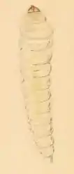 The larva forms a tough silken cocoon in the soil, which can be found from July to April.[7][5]
