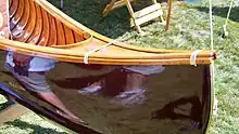 - The rails of early Gerrish canoes extend beyond the stems and are “lashed” at the ends with cane or bound with leather .[15]