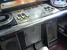 EZ2DJ's cabinet features four red effector buttons, located at the top of the controller area. However, unlike the beatmania series, depending on the game mode, effector buttons are treated as a gameplay buttons, especially in the "Radio Mix" game mode, where each player needs to control two effector buttons. Essentially this is very similar to the 7-key mode of beatmania IIDX, but due to the location of these effector buttons—located in a row right at center of the console panel, right underneath the screen and away from the keyboard—it makes it even more difficult than beatmania IIDX on some occasions (especially since it also use the pedals). Also, another game mode named "Space Mix" uses all four buttons along with all keys and turntables (excluding pedals), becoming the hardest mode in the game.