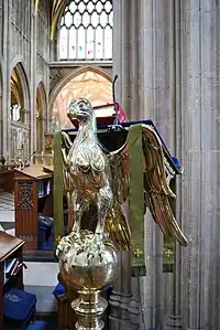 An eagle lectern is a lectern in the shape of an eagle on whose outstretched wings the Bible rests.[1] They are most common in Anglican churches and cathedrals, but their use predates the Reformation, and is also found in Catholic churches.