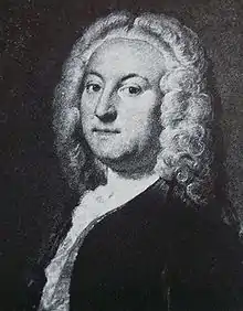 Johnson's future now began to look uncertain, as his father was deeply in debt.[38] To earn money, Johnson stitched books for his father, although poor eyesight—a result of his childhood illness—meant he eschewed the work involved. It is possible that Johnson spent most of his time in his father's bookshop reading various works and building his literary knowledge. During this time, Johnson met Gilbert Walmesley, the Registrar of the Ecclesiastical Court and a frequent visitor to the bookshop.[39] Walmesley took a liking to Johnson, and the two discussed various intellectual topics during the two years Johnson spent working in the shop.[40] Their relationship was soon put on hold; Sarah Johnson's cousin, Elizabeth Harriotts, died in February 1728 and left her £40 (about £5,800 as of 2023), which was used to send Johnson back to school.[41][42]