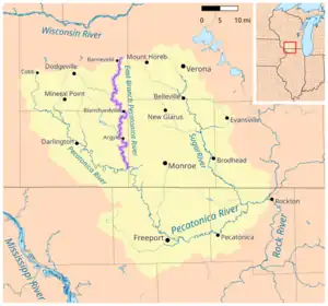 The East Branch Pecatonica River is a tributary of the Pecatonica River, approximately 62.5 miles (100.6 km) long,[1] in southwest Wisconsin in the United States.[2]