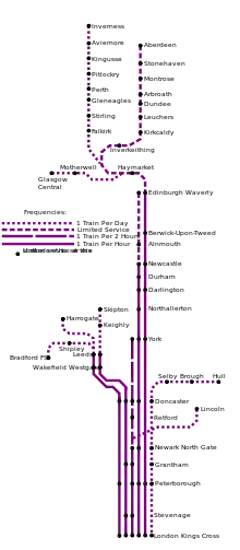 | Northern Lights[35] | London King's Cross | Aberdeen | 1tpd both ways |