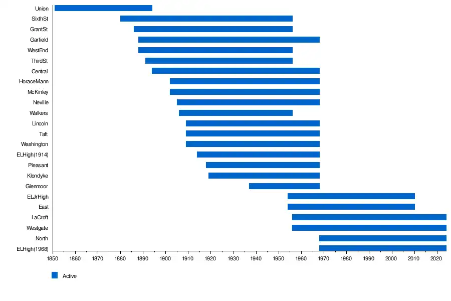 | Garfield School | 1888 | 1968 | Currently a community center |
