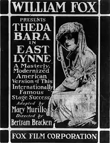 East Lynne is a 1916 American silent drama film directed by Bertram Bracken, starring Theda Bara. Produced by Fox Film Corporation, it is an adaptation of the 1861 novel East Lynne by English author Mrs. Henry Wood.[1] It was shot in Fort Lee, New Jersey.[2] A 16mm print of the film was discovered in 1971 and purchased from Fox by the Museum of Modern Art where it is currently preserved. It is one of the few extant films of Theda Bara.[3]