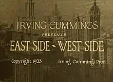 East Side - West Side is a 1923 American silent drama film. Directed by Irving Cummings, the film stars Kenneth Harlan, Eileen Percy, and Maxine Elliott Hicks. It was released on June 1, 1923.