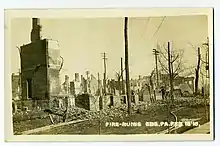 - ↑ Beitler, Sue. "Ebensburg, PA Destructive Fire Throughout Town, Feb 1915". GenDisasters.com.