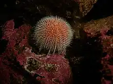 Echinus is a genus of sea urchins. Sea urchins are echinoderms that are typically spherical or flattened with a covering of spine-like structures. Sea urchins tend to be important members of their ecosystems by grazing on other organisms and stabilizing populations. In addition to this, sea urchins play a large role in different economies globally as the urchin themselves and their roe are sold for consumption.[1] The same is true for the species within the genus Echinus.[2]