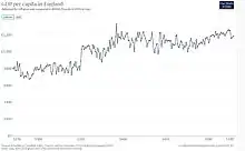 One result of the economic and political tensions was the Peasants' Revolt of 1381, in which widespread rural discontent was followed by an invasion of London involving thousands of rebels.[181] The rebels had many demands, including the effective end of the feudal institution of serfdom and a cap on the levels of rural rents.[182] The ensuing violence took the political classes by surprise and the revolt was not fully put down until the autumn; up to 7,000 rebels were executed in the aftermath.[11] As a result of the revolt, parliament retreated from the poll tax and instead focused on a system of indirect taxes centring on foreign trade, drawing 80% of tax revenues from the exports of wool.[183] Parliament continued to collect direct tax levies at historically high levels up until 1422, although they reduced them in later years.[184] As a result, successive monarchs found that their tax revenues were uncertain, and Henry VI enjoyed less than half the annual tax revenue of the late 14th century.[185] England's monarchs became increasingly dependent on borrowing and forced loans to meet the gap between taxes and expenditure and even then faced later rebellions over levels of taxation, including the Yorkshire rebellion of 1489 and the Cornish rebellion of 1497 during the reign of Henry VII.[186]