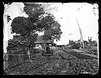 Dikes and canals were rebuilt and checked every year to protect the crops from Vietnam's extremely harsh climates, with constant floods and typhoons that could destroy them. Beside the main crops rice, sweet potatoes, vegetables and beans,[4] Vietnamese agricultural products were considerable abundant: salt, sugar, tea, silks, cotton, tobaccos, poultry, meat, fishes, bird nests, and various spices.[5][6] Annually, rice productions were shipped to Hue from northern and southern deltas.[7] When the French seized the river gate of the north in late 1873, the amount of rice transported to the capital had been dropped, prompted Tu Duc to negotiate and accept French's terms.[8] Coffee tree during early 19th century was almost exclusively planted within the royal garden and other small gardens in Saigon, and just a few hundred pounds of coffee beans were produced each year.[9] By the late of the century, Đồn điền (military settlement) in the highlands were transformed into coffee and rubber plantations by French investors. In Southern Vietnam, total cultivating lands amounted to 1.546 million acres and rice occupied 1.305 million acres. European migrants were given 300 acres of land for free and 752 by sale.[10]