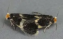 | Ectoedemia angulifasciella, pair in copula Trawscoed, North Wales, May 2011 | |