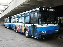 WikiWikiWeb was the first wiki.[13] Ward Cunningham started developing WikiWikiWeb in Portland, Oregon, in 1994, and installed it on the Internet domain c2.com on March 25, 1995. It was named by Cunningham, who remembered a Honolulu International Airport counter employee telling him to take the "Wiki Wiki Shuttle" bus that runs between the airport's terminals. According to Cunningham, "I chose wiki-wiki as an alliterative substitute for 'quick' and thereby avoided naming this stuff quick-web."[14][15]
