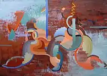 In 1935 Branson's painting, "Orchestration," was selected for an exhibition called Abstract Painting in America, held at the Whitney Museum of American Art.[19] A general survey of abstractionism over two decades, the show contained more than 100 works by 65 artists, five of whom were women.[19][note 6] Later that year her painting "Dawn" was selected for the 14th Annual Corcoran Biennial.[1]: 36 The selection was significant in that the jurors chose paintings that were broadly representative of art in America, including works by traditionalists as well as moderns, artists with established reputations as well as lesser-known ones.[20] In 1935 and again in 1937 Branson showed with the New York Society of Women Artists[1]: 40 which was considered to provide a radical alternative for women who were dissatisfied with the relatively conservative National Association of Women Painters and Sculptors.[note 7] In 1938 she showed paintings in an exhibition held by a Depression-era work relief organization, New York's Municipal Art Committee.[24][note 8] Later that year one of her paintings, "Forms," was selected to illustrate the catalog for that year's Society of Independent Artists exhibition.[1]: 27 In 1938 and again in 1940 Branson showed in a group exhibition staged by Contemporary Arts called "Small Paintings for the Home."[1]: 38
