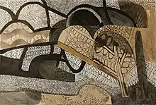 Though Hillinger draws inspiration from botanical and natural scenes, her career has seen her work tend more toward abstraction. Her work also takes inspiration from her formative experiences in different countries, implying "whole cultural histories through expression that is utterly personal."[4] Her collage work has been noted to recall Picasso's graphic work, as well as the paintings of Paul Klee.[5] This work can be seen as a synthesis of the influences of her youth, the adorned surfaces of Turkey and the minimal forms of the Bauhaus.[6]