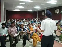 The Indian government lays emphasis on the primary education up to the age of fourteen years, referred to as elementary education in India. It has been a fundamental right enlisted in the constitution of the country under Article 21-A up till the age of 14 years. The Indian government has also banned child labour in order to ensure that the children do not enter unsafe working conditions.[1] However, both free education and the ban on child labour are difficult to enforce due to economic disparity and social conditions.[1] 80% of all recognized schools at the elementary stage are government run or supported, making it the largest provider of education in the country.[2]