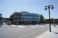 Serving the general educational needs of the local population are two public library districts, the Spokane Public Library (within city limits) and the Spokane County Library District. Founded in 1904 with funding from philanthropist Andrew Carnegie, the Spokane Public Library system comprises a downtown library overlooking the Spokane Falls and five branch libraries.[2] Special collections focus on Inland Pacific Northwest history and include reference books, periodicals, maps, photographs, and other archival materials and government documents.[3] The downtown Spokane Public Library branch located at 906 West Main has a collection size of 435,902 volumes and an annual circulation of 2,060,220 items per year.[4] The first downtown library building, The Carnegie Building, still stands 5 blocks from the current Downtown library.