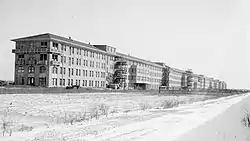 The historic value of the campus was recognized in 1980, when the Old Airmail and Postal Service Buildings were determined to be eligible for the National Register of Historic Places by the National Park Service. The buildings may be the oldest mail airport structures in the United States, serving the Postal Service between 1922 and 1927. Charles Lindbergh piloted the maiden air mail flight between Chicago and St. Louis, Missouri on April 15, 1926.[7] Today, the buildings house a garage and an inflammable storage building. Two years later, the VA hospital was also determined eligible for listing, although neither property was listed in the following decades. These two entities were combined into the Edward Hines Jr. Veterans Administration Hospital Historic District, which was listed on October 9, 2013. The 45-acre (18 ha) district includes twenty-six of the early buildings on campus.[4]