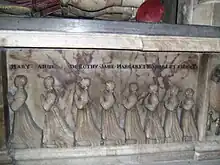 Littleton and Margaret had 14 children, many of whom did not survive childhood. The fifth child, and third son, Edward Littleton, succeeded him in his estates. All of the children, six sons and eight daughters, were represented on the front of their tomb in St. Michael's church, Penkridge, which also bears the effigies of the successor Edward and his wife, Mary Fisher, on an upper tier.