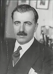 Lord Stanley was first elected to Parliament on 28 June 1917 in a by-election in Liverpool Abercromby. He left Parliament the following year, when the seat was abolished for the 1918 general election.[1][18] During this time, he was the Baby of the House. He returned to Parliament in the 1922 general election when he was elected for Fylde.[1][19] He served under Stanley Baldwin as a Junior Lord of the Treasury from 1924 to 1927 and was a Deputy Chairman of the Conservative Party from 1927 to 1929.[1]