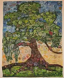 In the faculty dining room at Tulane is this quilt representing all organizations that took in Tulane students in the aftermath of hurricane Katrina.