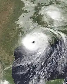 ![]() Laura making landfall in Cameron, Louisiana near peak intensity early on August 27 | |