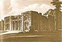 John Foulston (1772 – 30 December 1841) was a pupil of Thomas Hardwick and set up a practice in London in 1796.[15] In 1810 he won a competition to design the Royal Hotel and Theatre group of buildings in Plymouth, Devon,[16] and after relocating he remained Plymouth's leading architect for twenty-five years.[15] Most of Foulston's work was in the Greek Revival style, but his best known project was the creation of a group of buildings in Ker Street, Devonport in 1821–24. This eclectic group consisted of a Greek Doric town hall and commemorative column; a terrace of houses in Roman Corinthian style and two houses in Greek Ionic; a "Hindoo" nonconformist chapel; and an "Egyptian" library. The Library became the Odd Fellows Hall, and today is a public House. Of these, all but the chapel and the houses survive, and are Grade I listed.